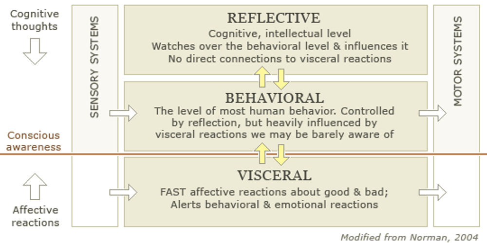 In his book Emotional Design: Why We Love (or Hate) Everyday Things, Don introduced the three levels to help readers understand how people experience products.