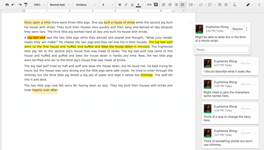 Google Docs is a great example of how users can utilize its comment and annotations features to support cognitive tracing.