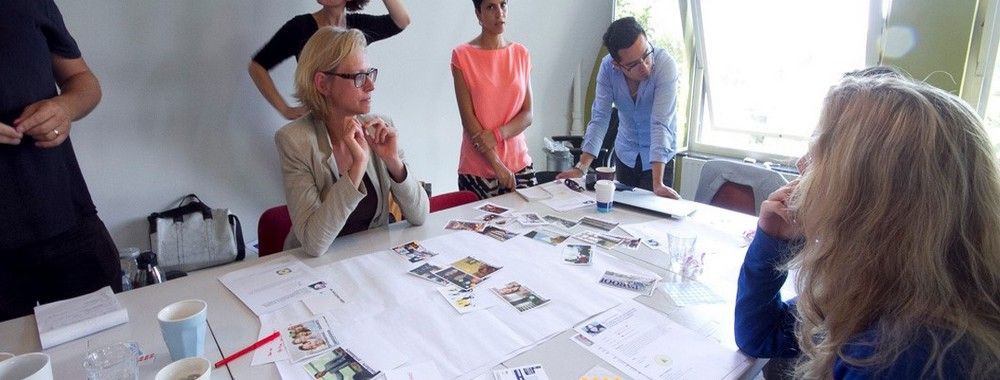 In space saturate and group, designers collate their observations and findings into one place, to create a collage of experiences, thoughts, insights, and stories. The term 'saturate' describes the way in which the entire team covers or saturates the display with their collective images, notes, observations, data, experiences, interviews, thoughts, insights, and stories in order to create a wall of information to inform the problem-defining process. It will then be possible to draw connections between these individual elements, or nodes, to connect the dots, and to develop new and deeper insights, which help define the problem(s) and develop potential solutions. In other words: go from analysis to synthesis.