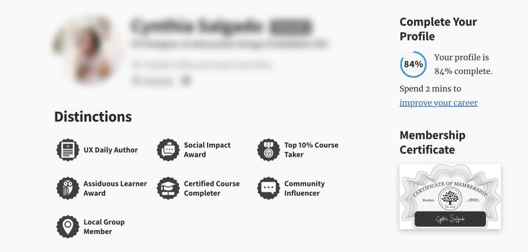 The distinctions are awarded to IxDF members who have achieved certain milestones, such as completing courses or contributing to discussions.